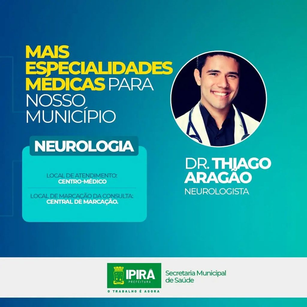 A Prefeitura de Ipirá, através da Secretaria Municipal de Saúde oferece um reforço no atendimento de uma nova especialidade médica – a neurologia. A partir desta semana, os atendimentos já estão sendo realizados pelo neurologista Dr. Thiago Aragão, que atuará no Centro Médico de Especialidades. Para marcação de Consultas, os pacientes deverão procurar a Central […]