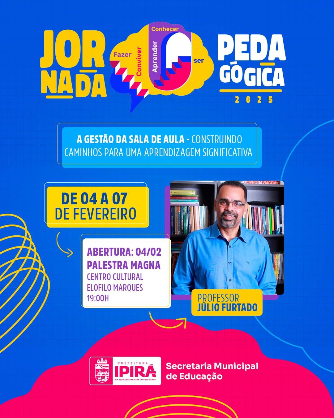 A Prefeitura de Ipirá, por meio da Secretaria Municipal de Educação, promoverá entre os dias 4 e 7 de fevereiro a Jornada Pedagógica 2025, evento voltado para a capacitação e o aprimoramento dos profissionais da educação. Com o tema “A Gestão da Sala de Aula – Construindo Caminhos para uma Aprendizagem Significativa”, a programação inclui […]
