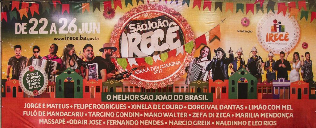 Com o tema Sou Sertão de Coração, Irecê, localizada no centro-norte da Bahia, realiza o Arraiá das Caraíbas, de 22 a 26 de junho. Em 2017, O Melhor São João do Brasil traz aos palcos da Praça Clériston Andrade (Praça do São João) e do Mercadão do Zé Bigode, grandes atrações nacionais, como Marília Mendonça, […]