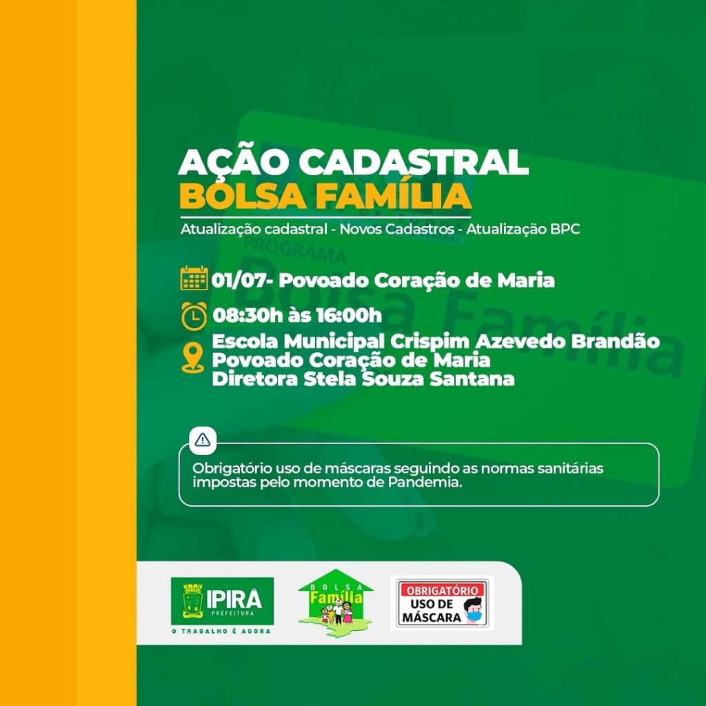 Secretaria de Assistência Social realizará ação itinerante para atualização de cadastro do Bolsa Família em Ipirá
