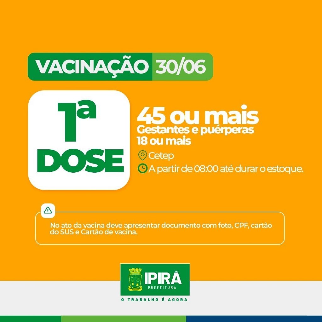 Vacinação segue avançando em Ipirá; pessoas com 45 anos, gestantes e puérperas são vacinadas contra Covid-19