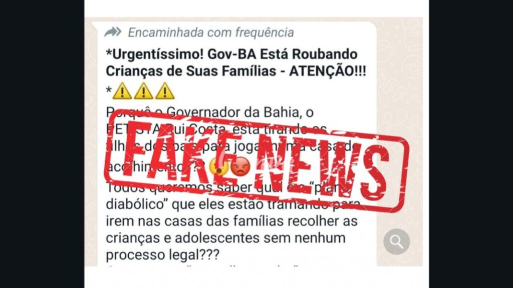 Fake! Governo da Bahia não está roubando crianças de suas famílias