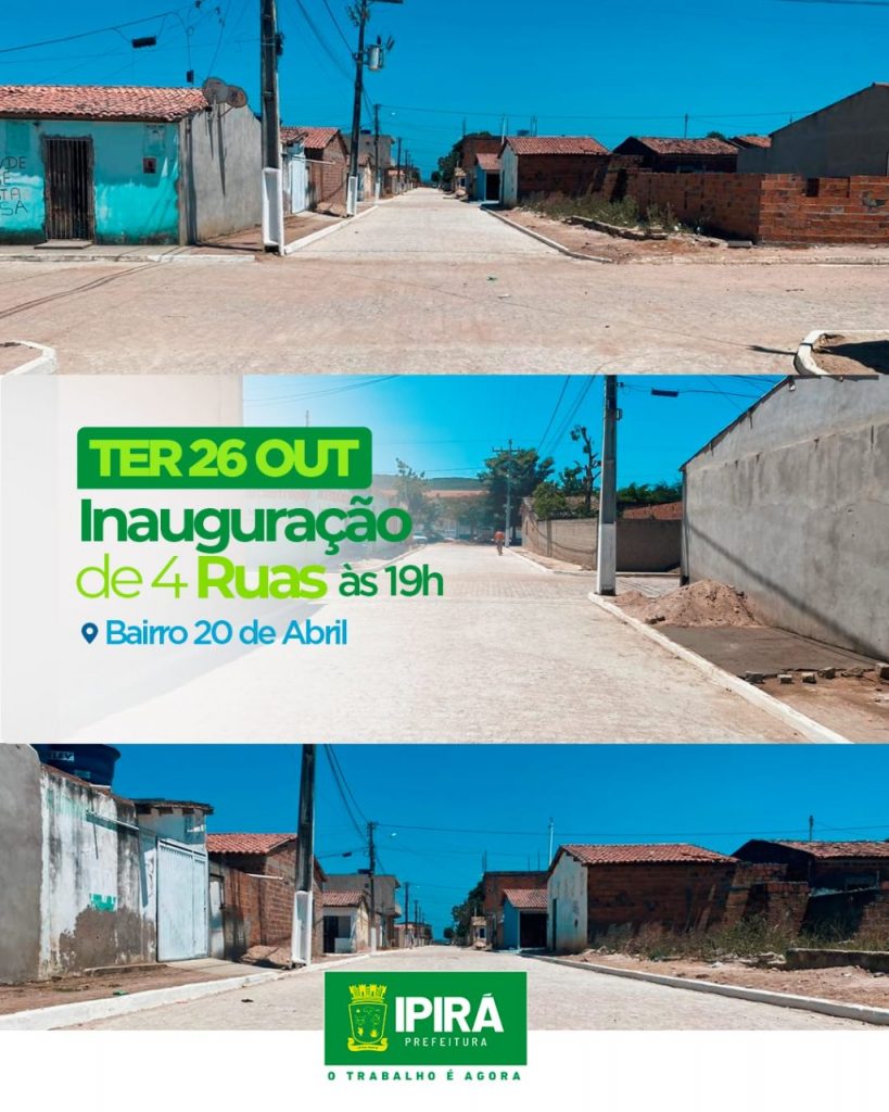 A Prefeitura de Ipirá entregará as obras de calçamento realizadas no Bairro 20 de Abril. As Ruas Eval Santos, Rua Joaquim Silva Santos, Rua Delorme Martins da Silva e Rua Projetada receberam as ações que proporcionam melhoria na qualidade de vida dos moradores e foram realizadas através de emenda do Deputado Federal Otto Filho. A […]