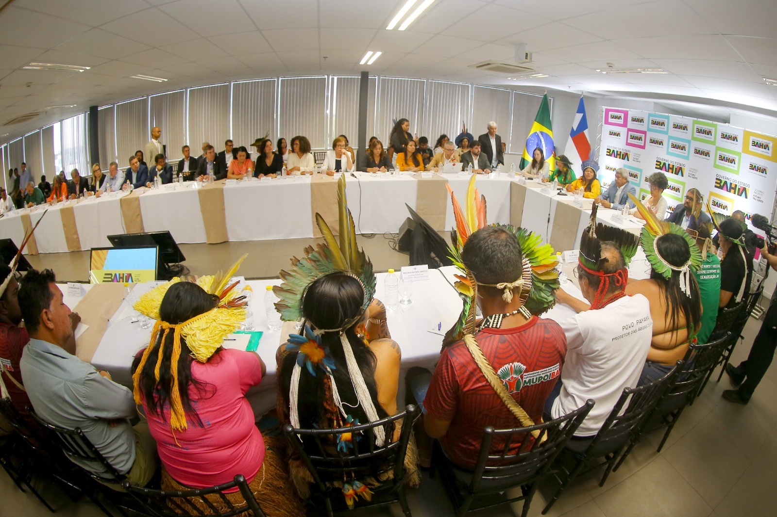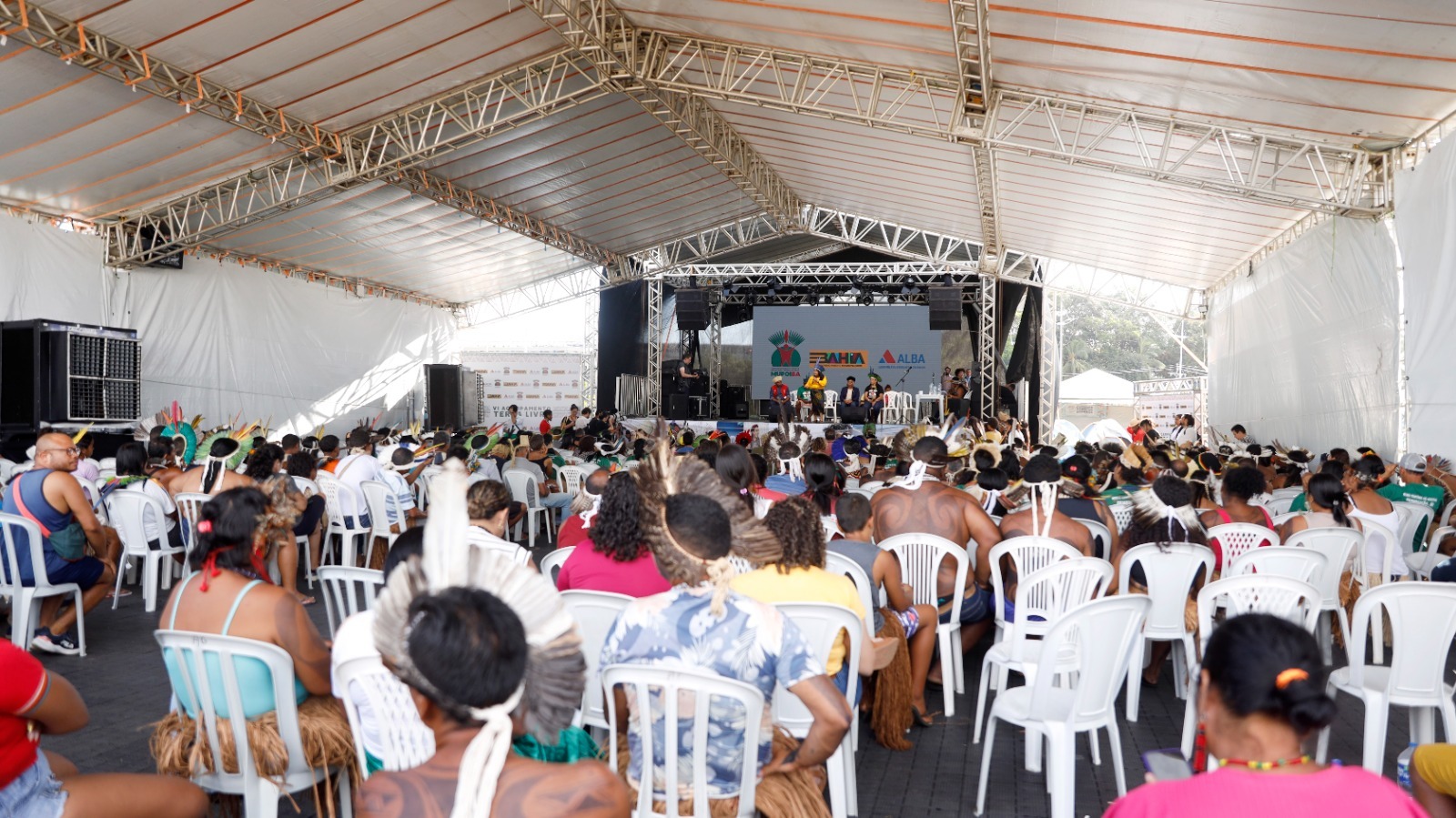 Mais de 1500 indígenas, representando 32 etnias de 33 municípios baianos, estão reunidos na área verde da Assembleia Legislativa da Bahia (Alba), no Centro Administrativo,